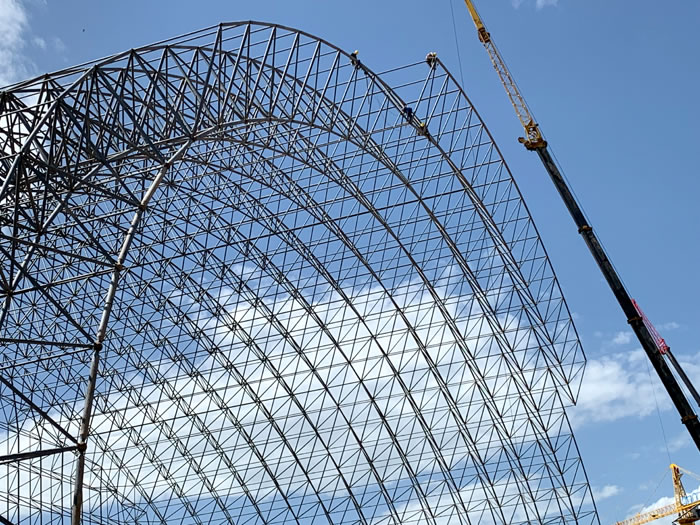 (2)网架加工前应对现场尺寸进行复测,确认无误后方可进行加工、安装;网架制作、运输、安装应遵守《空间网格结构技术规程》JGJ7-2010、《钢网架鹤壁螺栓球节点》JG/T 10-2009、《钢网架鹤壁螺栓球节点用高强度螺栓》 GB/T 16939-2016、《鹤壁钢结构鹤壁工程鹤壁施工规范》 GB50755-2012、《鹤壁钢结构鹤壁工程施工质量验收标准》 GB50205-2020。